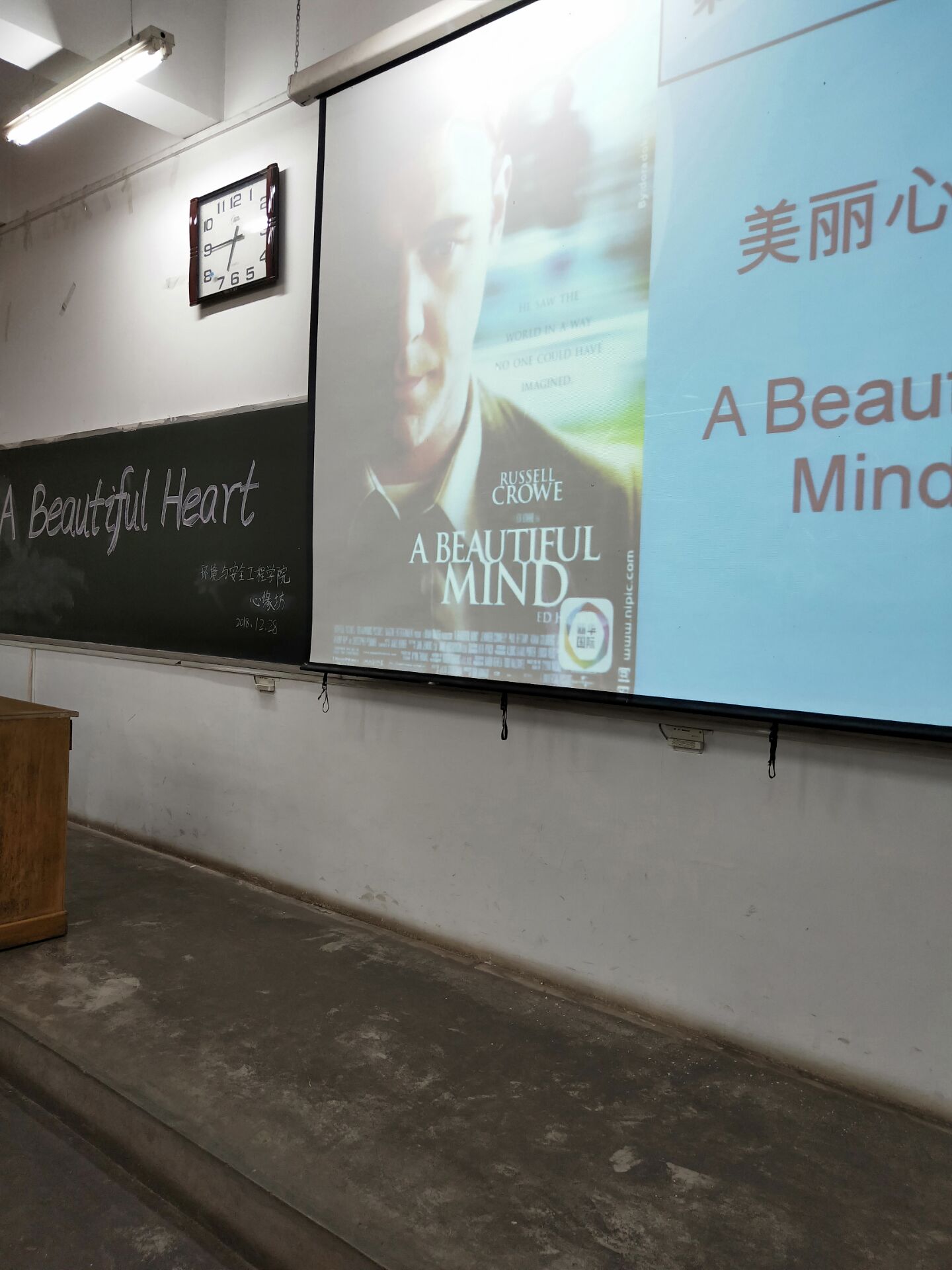 心理站心缘坊在10201H放映本学期第四期心理电影《美丽心灵》,现场虽然寒冷,但也没挡住同学们观影的热情。本次活动由心缘坊心理委员王铁担任主持人,在进行了电影简介后,电影开始放映。