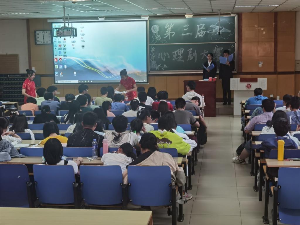 在各评委老师和同学落座后,本次活动正式开始。首先,主持人上台介绍了本次活动的主题并向同学们介绍了邀请的评委老师以及本次大赛的评分标准。接着,在热烈的掌声下,各班给我们带来了他们丰富多彩的小剧本,各位演员用精湛的演技给我们展示了丰富的人物形象。除此之外,各个班级还制作了相应的PPT和旋律优美的音乐,为表演营造了温馨欢快的氛围,也使表演更加生动化,给观众们带来良好的视觉听觉双重享受。在各班级的心理剧展示中,展现出了大学生活中的迷茫,亲子关系的疏远,室友交流的阻隔等等大学生活缩影。本次心理剧表演题材涉及广泛,真实的反映出目前大学生潜在的一些心理问题。表演结束后,由自拍外流