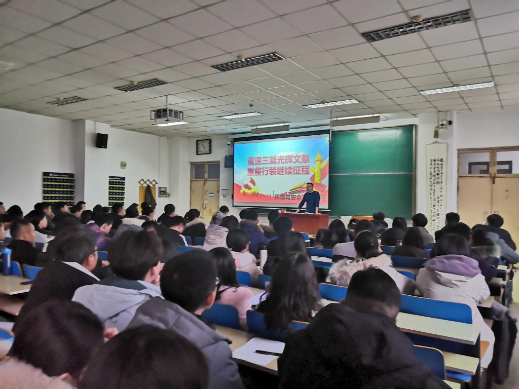 全体学生党员在学院党委副书记张少明老师的带领下,在11412教室再次集中学习习近平总书记“三篇光辉文献”,深入对文献精神的领悟。