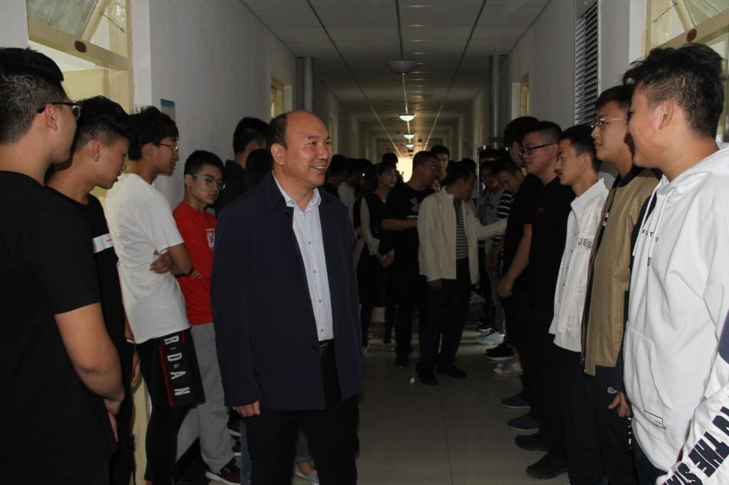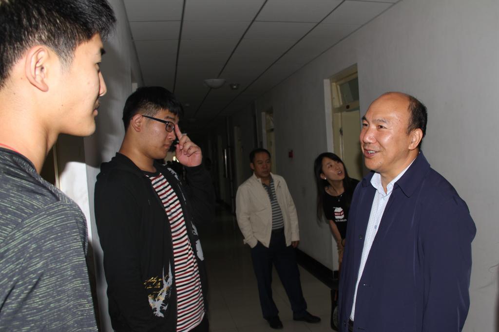 领导首先来到文韬六女生宿舍,询问新生是否满意住宿,接着又询问了新生的个人情况。面对院领导慰问,大一新生没有过多的拘谨,回答的声音十分嘹亮,现场气氛其乐融融。在视察宿舍的过程中,院领导还与未曾离开的家长进行了简要的探讨与交流,让家长们对孩子独自生活更加放心。随后,院领导走访文韬七男生宿舍,院党委书记赵树森对新生们提出少打游戏、多学习的要求,并强调了宿舍安全用电的基本做法,同时希望新生们可以为创造温馨生活环境共同努力,新生们欣然接受。结束走访后,新生们热情地与各领导挥别,感谢领导的关心。