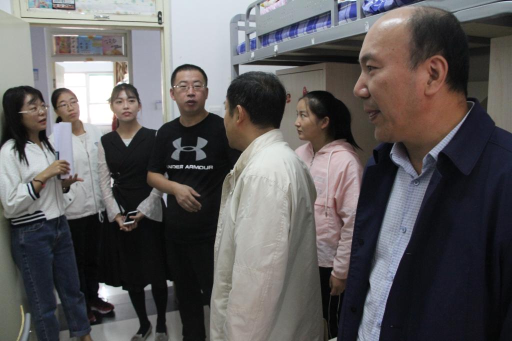 2018年9月8日下午5点,环境与安全工程学院党委书记赵树森、副院长曹雄、院党委副书记张少明、新生班班主任陈靓、赵雅欣、谷磊磊等在学生会工作人员的陪同下来到文韬六、七号公寓楼看望自拍外流