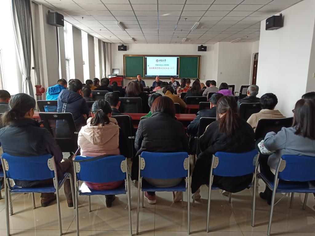 在科学楼C座西901召开本科教育思想大讨论大会(二)。学院领导及全体教师参加会议。会议由院长王晶禹主持。