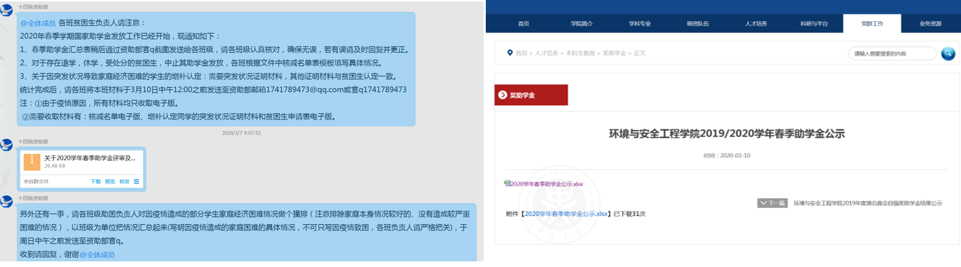 2020年3月7日正式开始本学期的助学金评选工作,由于疫情原因,本次活动的信息收集及核对均在线上进行。自拍外流