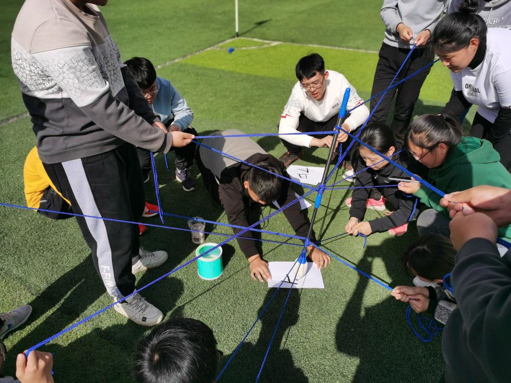 默契,是一个团队在有着强大凝聚力后的产物。在接下来的环节中,同学们在避免直接交流的前提下,依靠着团队的默契以及强大的团队配合,将数字由头至尾依次传递,这彰显的是一个整体,是一个渐渐成长的集体。同学之间心有灵犀,在这绿色的草地上,在这片蓝色的天空下,默默地将心心相连,将数字传递。