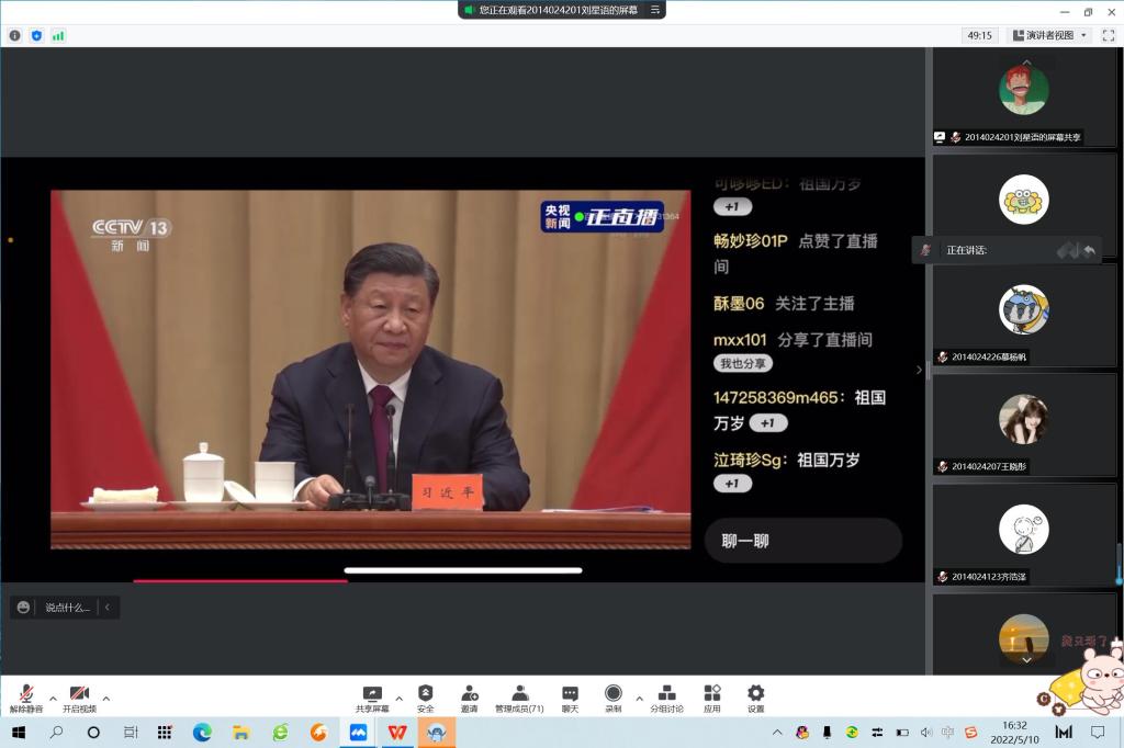 学院各团支部也以线上集中收听收看方式认真收听收看大会。大家纷纷表示,习近平总书记的讲话思想深刻、内涵丰富,情真意切、催人奋进,作为青年学子,感觉备受鼓舞。共青团是党的助手和后备军,新时代青年一定要争做有信念、有梦想、有奋斗、有奉献的人,在实现中国梦的伟大实践中书写灿烂青春。