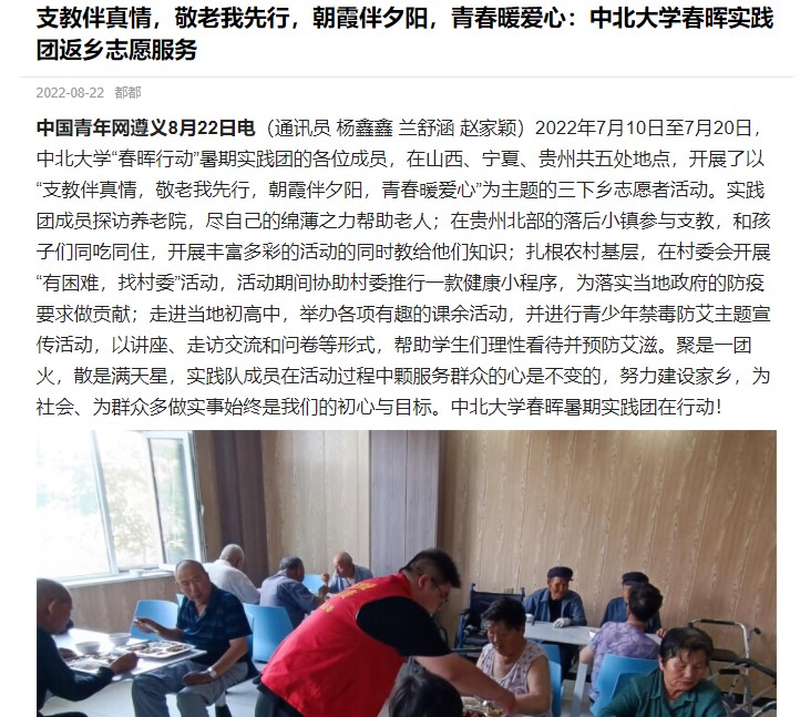 【中国青年网】支教伴真情,敬老我先行,朝霞伴夕阳,青春暖爱心:自拍外流