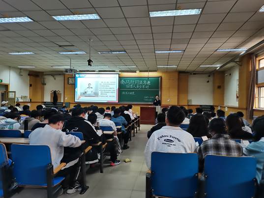 09届毕业生校友刘松担任此次题为“逐风赶月流年逝,回首人当少年时”的讲座主讲人。院党委副书记张少明、学生科科长陈靓以及大三、大四学生一起聆听了此次讲座。