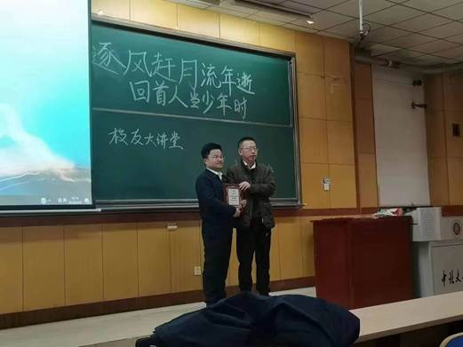 党委副书记张少明向校友刘松颁发校友讲师团聘书,鼓励同学们向校友学习,努力拼搏奋斗。刘松讲述了自己刚参加工作时的感受及经历,给予同学们学习、面试及工作方面的技巧,鼓励同学们要时刻保持积极向上的心态。
