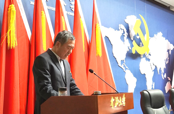 大会在庄严的国歌声中拉开帷幕。王晶禹同志向为学院作出贡献的老党员、退休教职工表示感谢。王振荣同志受上一届党委的委托,做了题为《牢记使命、守正创新,踔厉奋发、勇毅前行,谱写自拍外流