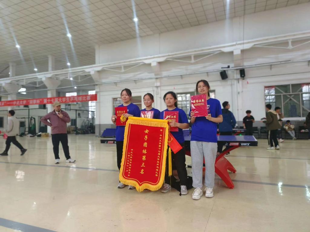 第十七届大学生乒乓球比赛女子团体第三名;排球队获得自拍外流