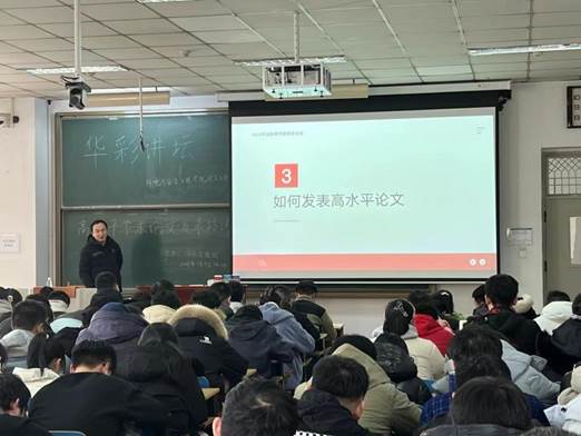 冯教授以如何撰写高水平学术论文为主线,分别从论文的选题、撰写、绘图、投稿等环节为同学们进行了讲解。他指出,想要发表高水平论文必须先阅读足够数量的优质文献,掌握前沿动态,紧跟行业节奏,了解前沿研究,保证选题的新颖。