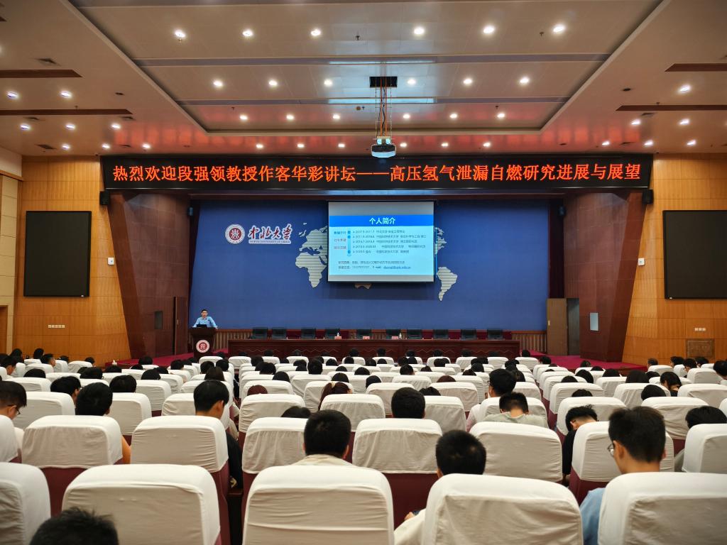 安全工程专业,后保送至中国科学技术大学深造。主要研究方向为氢能、锂电池等新能源开发利用中的火灾安全等。讲座中,段强领副教授详细的介绍了高压氢气泄漏自燃相关的进展,同时作为中北学子,以自身的成功事迹激发了大家对科研的热情,以及对氢能技术未来发展的期待。