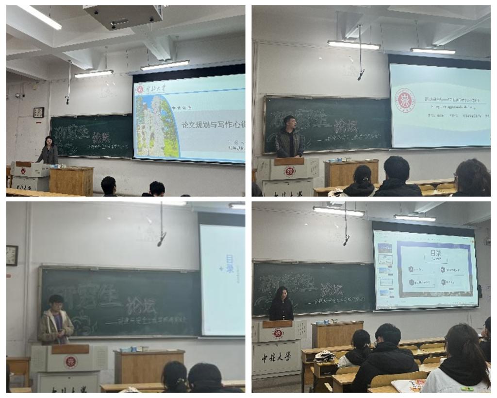 于10203H教室举办“心之所向,行则将至”研究生论坛。本次论坛邀请了2024年国家奖学金获得者博士生张诗敏、硕士生杜瑞、程静、郭泰东,分享他们在科学研究中的心得体会。