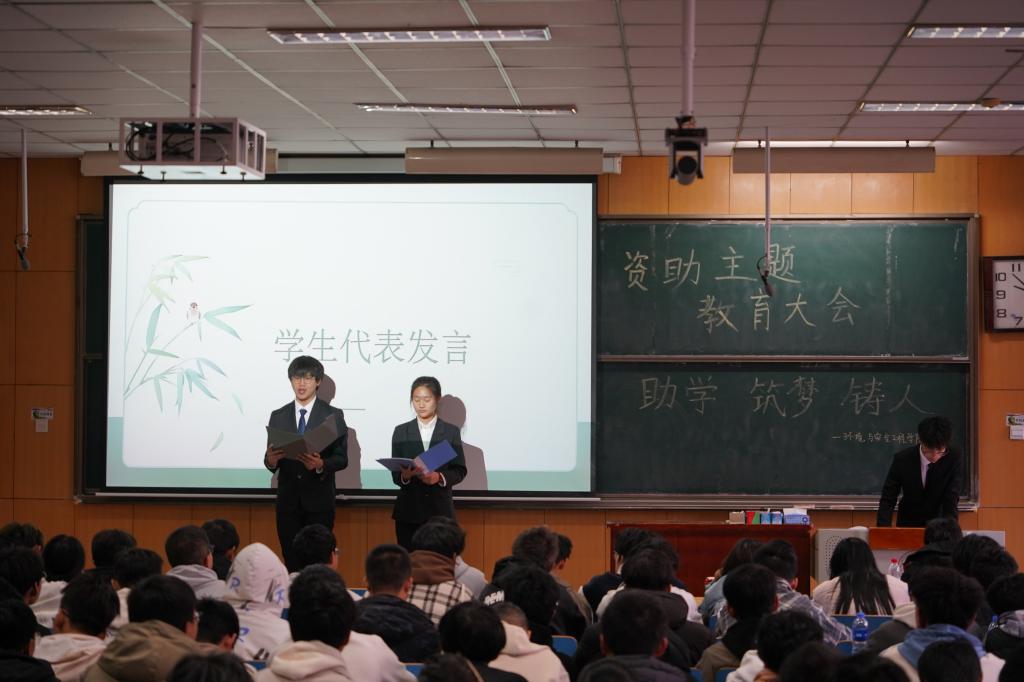 在11号楼举办“助学、筑梦、铸人”资助主题教育活动,活动邀请学院资助负责老师史老师指导,优秀学生代表袁梦珂、王晨学长、戴泽晖、高隽乔分享、学生会各部门部长、各班资助负责人与困难学生参加,共同开启一场关于希望与支持的温暖之旅。
