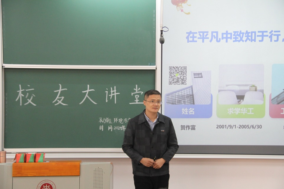 邀请环境工程专业优秀校友贺作富,为大一大二学生开展职业生涯规划讲座。自拍外流