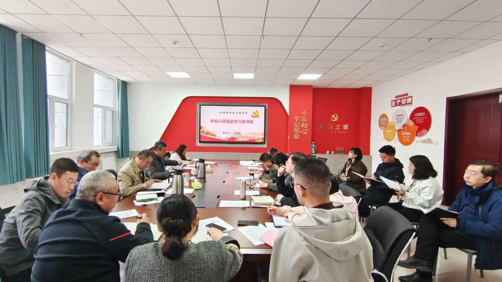 党委在新能源化工大楼A座312会议室举办深入贯彻中央八项规定精神学习教育读书班。学院领导、党委委员、各科科长、党支部书记参加学习研讨。本次活动由院党委书记王振荣同志主持。