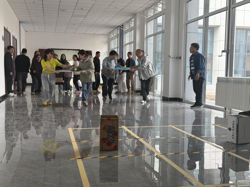 组织全体教职工开展了一场别开生面的素质拓展活动。此次活动在学院一层大厅举行,活动内容丰富多样,趣味性与挑战性兼具,吸引了众多教职工积极参与。