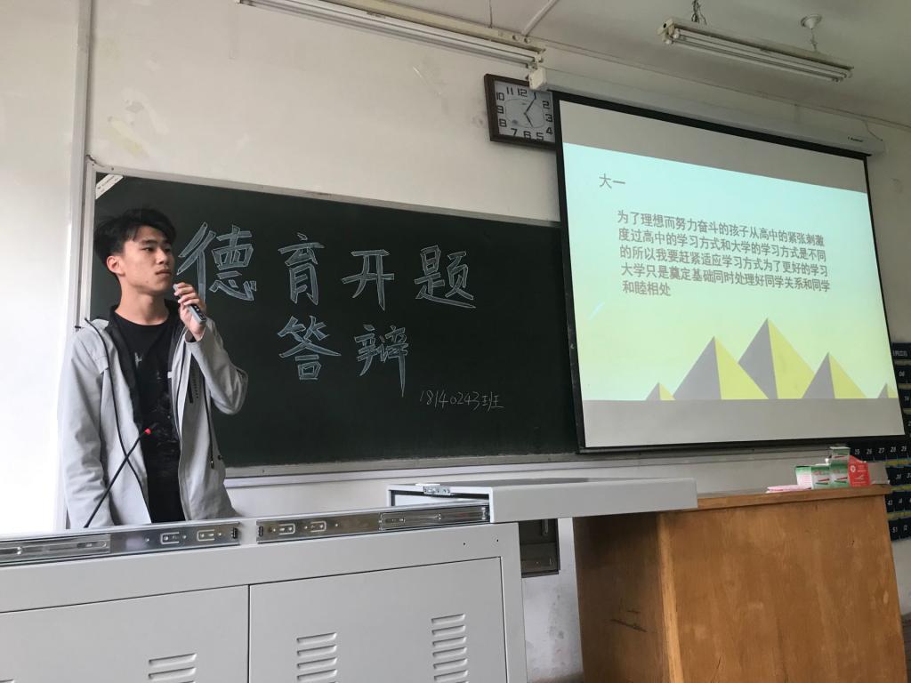 大学生的精神风貌,展现了当代大学生的思想动态。德育答辩给学生提供了互相交流学习的平台,拉近了学生之间的距离。德育开题答辩,让大一学生更好地认识自己、了解自己,明确自己在大学四年中的航向,积极向自己既定的目标前进,也使班主任及学院老师对学生德育思想方向有详细的把握,为后续的德育教育工作提供了依据。