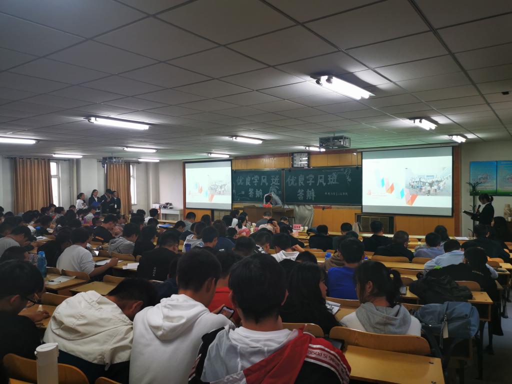 经过成绩统计,资格审查,最终共有十一个班级进入到优良学风班级答辩环节。活动上,答辩的班级代表就班级概况、思想建设、班级活动、班级荣誉、未来展望等方面,依次上台进行答辩。答辩班级制作精良的答辩PPT,精彩纷呈的答辩风格,吸引了评委和同学们的目光,也展现出同学积极向上的乐观态度。