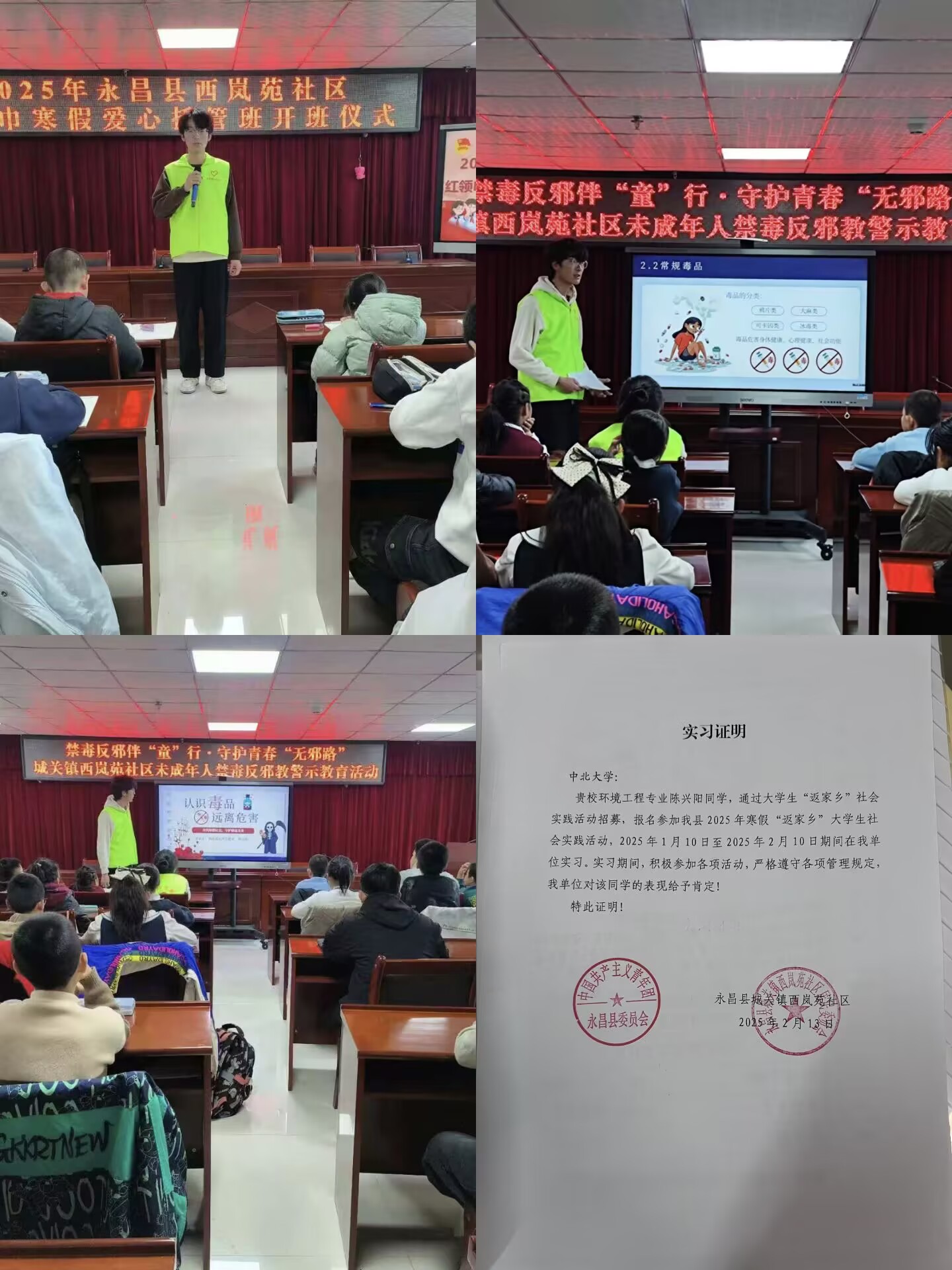 陈兴阳(24140141):寒假期间,陈兴阳同学参与社区红领巾托管班志愿活动,累计志愿服务时长 52 小时。在托管班中,他充分发挥自身优势,积极辅导社区孩子完成寒假作业,帮助他们解决学习难题;精心组织新年活动,如印福字、剪贴画等,培养孩子们的动手能力;带领孩子们参观县博物馆,让他们了解县城发展历史,增强历史认同感;讲解禁毒反邪教知识,提高孩子们的风险意识,为孩子们的成长提供了全方位的关怀和引导。