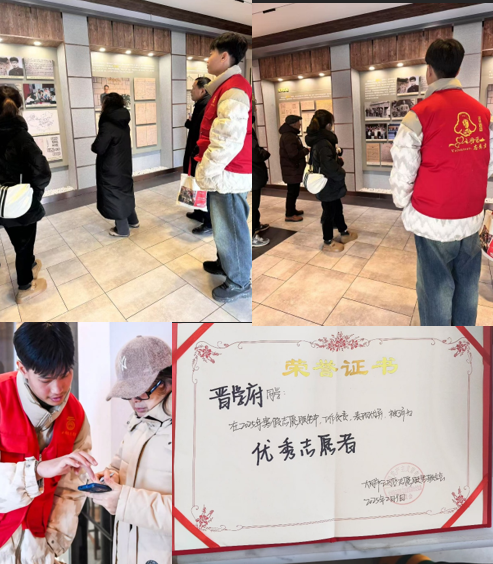 晋学府(24140344 班):2024 年寒假,晋学府同学积极参与云冈石窟志愿活动,累计服务时长超 60 小时。在志愿服务过程中,他为游客提供专业的讲解、贴心的引导和及时的帮助,协助景区维护秩序,并积极倡导文明旅游。他的耐心解答和热情服务赢得了游客的广泛好评,也获得了云冈区志愿服务联合会的认可,被授予 “优秀志愿者” 称号,其优秀事迹还被云冈石窟官方微信公众号报道,为学院树立了良好的形象。